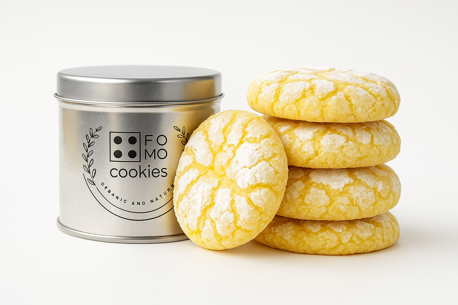 FOMO Lemon Crinkle Cookies just leveled up. This tin features four oversized cookies bursting with real lemon zest, balanced sweetness, and that signature crinkle top. Each one is soft-baked with a delicate sugar-dusted finish and the kind of citrus kick that leaves a lasting impression.