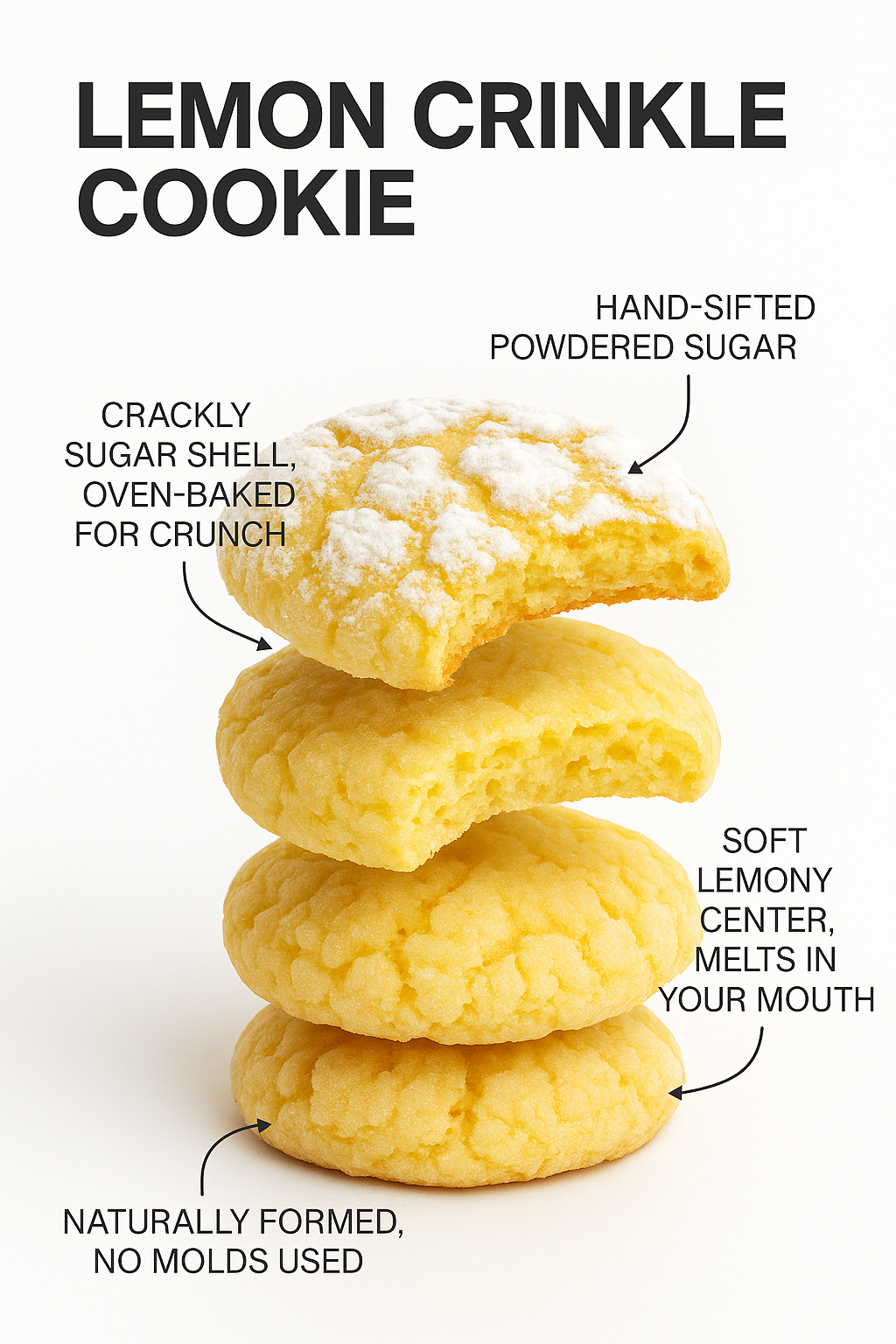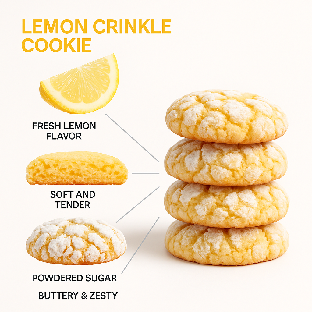 If you're the kind of snacker who likes a little sass with their sweet, these Lemon Crinkle Minis are calling your name. Bursting with citrusy zing and dusted with a light crinkle of powdered sugar, they pack the punch of fresh lemon bars—in a cookie that fits on your fingertip.